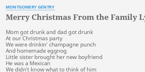 Merry Christmas From The Family Lyrics. Mom got drunk and dad got drunk At our Christmas party We were drinkin champagne punch And homemade eggnog Little sister brought her new boyfriend. Montgomery Gentry - Merry Christmas From The Family Lyrics. Mom got drunk and Dad got drunk At our Christmas party We were drinkin champagne punch and homemade eggnog Little sister brought her new boyfriend.