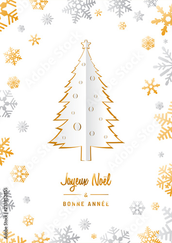 Joyeux Noel Et Bonne Annee Origami Card Template In French Translation Merry Christmas And Happy New Year Greeting Card Invitation With Christmas Pine Trees And Snowflakes Vector Illustration Stock Vector Adobe
